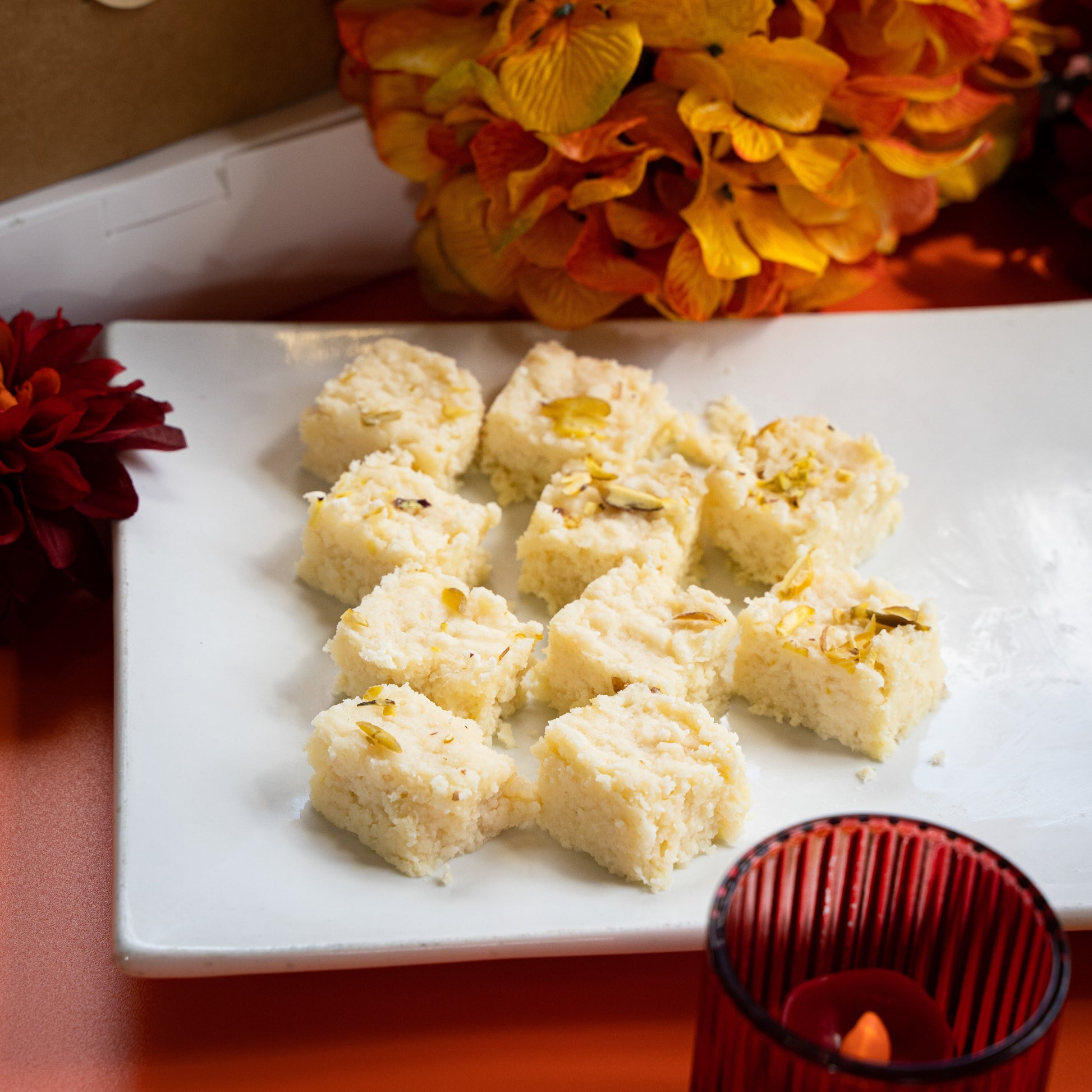 Sweet made primarily from chena and flavored with cardamom